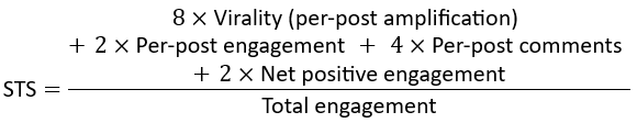 - High STS = Strong engagement intensity and viral capacity within the core base.