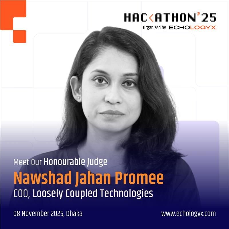 Loosely Coupled Technologies is proud to announce that Syeda Nawshad Jahan Promee, Chief Operating Officer of the company, has been invited to serve as an honorable judge at Hackathon’25, organized by Echologyx.